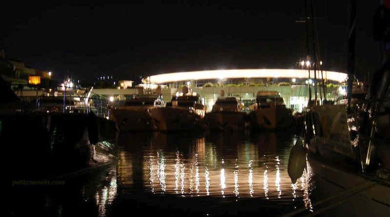 et reflets sur le port de Cannes le soir, devant le Palais des Festivals