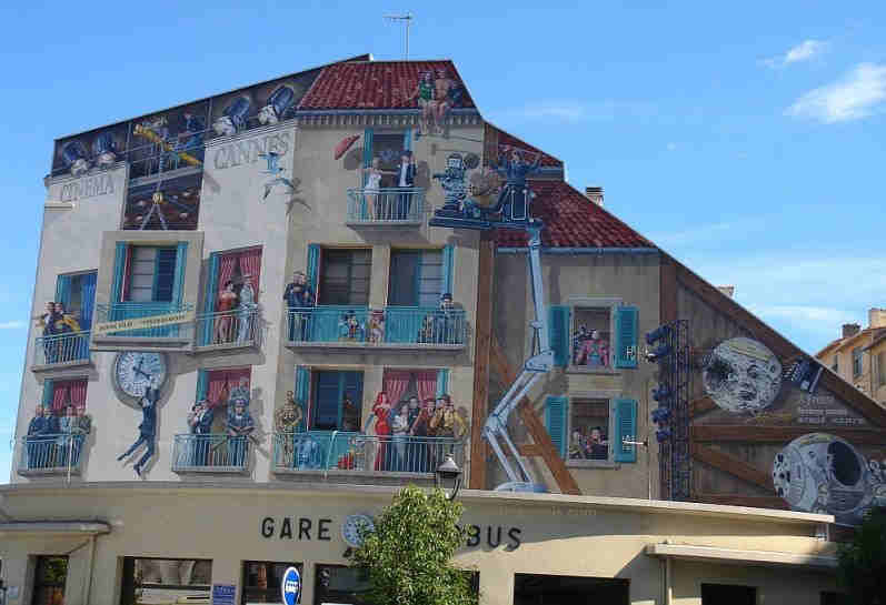 et peinte sur le mur de la gare de Cannes