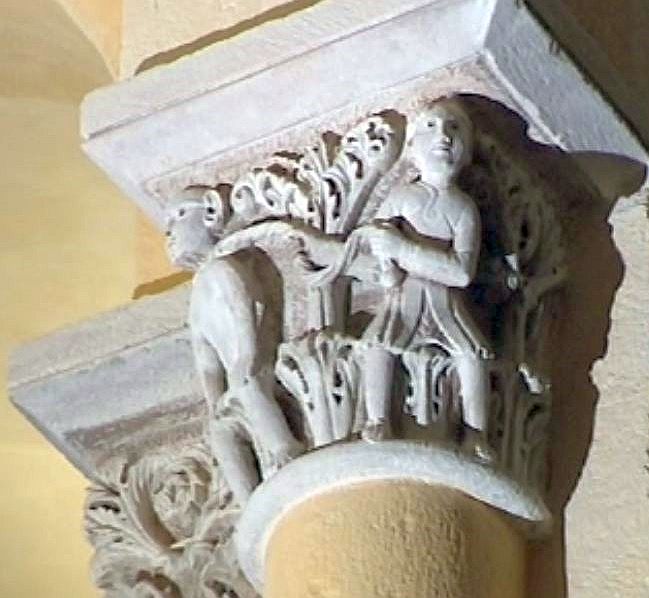chapiteau représente Adam et Eve, en présence de Jésus.