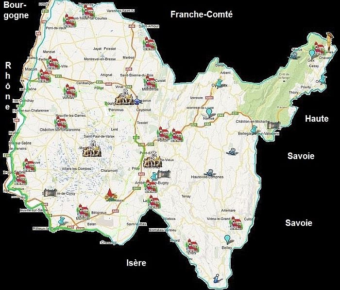 entre la Bresse, la Dombes et le Bugey.